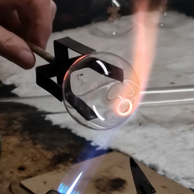 Zartes, mundgeblasenes Glas mit filigranen Inhalt aus Nussbaumholz, vereint in einer Kugel. Eingepackt in einem schönen Karton mit einem Futter aus schwarzen Seidenpapier. Das perfekte Geschenk zu einer besinnlichen Begebenheit.