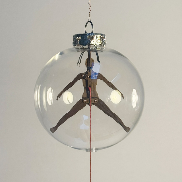 Dieses außergewöhnliche Objekt erwacht durch Ziehen an der unteren Glaskugel zum Leben. Rein mechanisch beginnt die Figur im Inneren der Kugel zu tanzen.